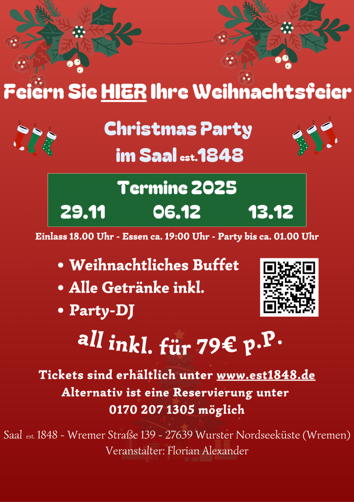 Sichert euch daher also schnellstmöglich eure Tickets für unsere festlichen Weihnachtsfeier 2025!
